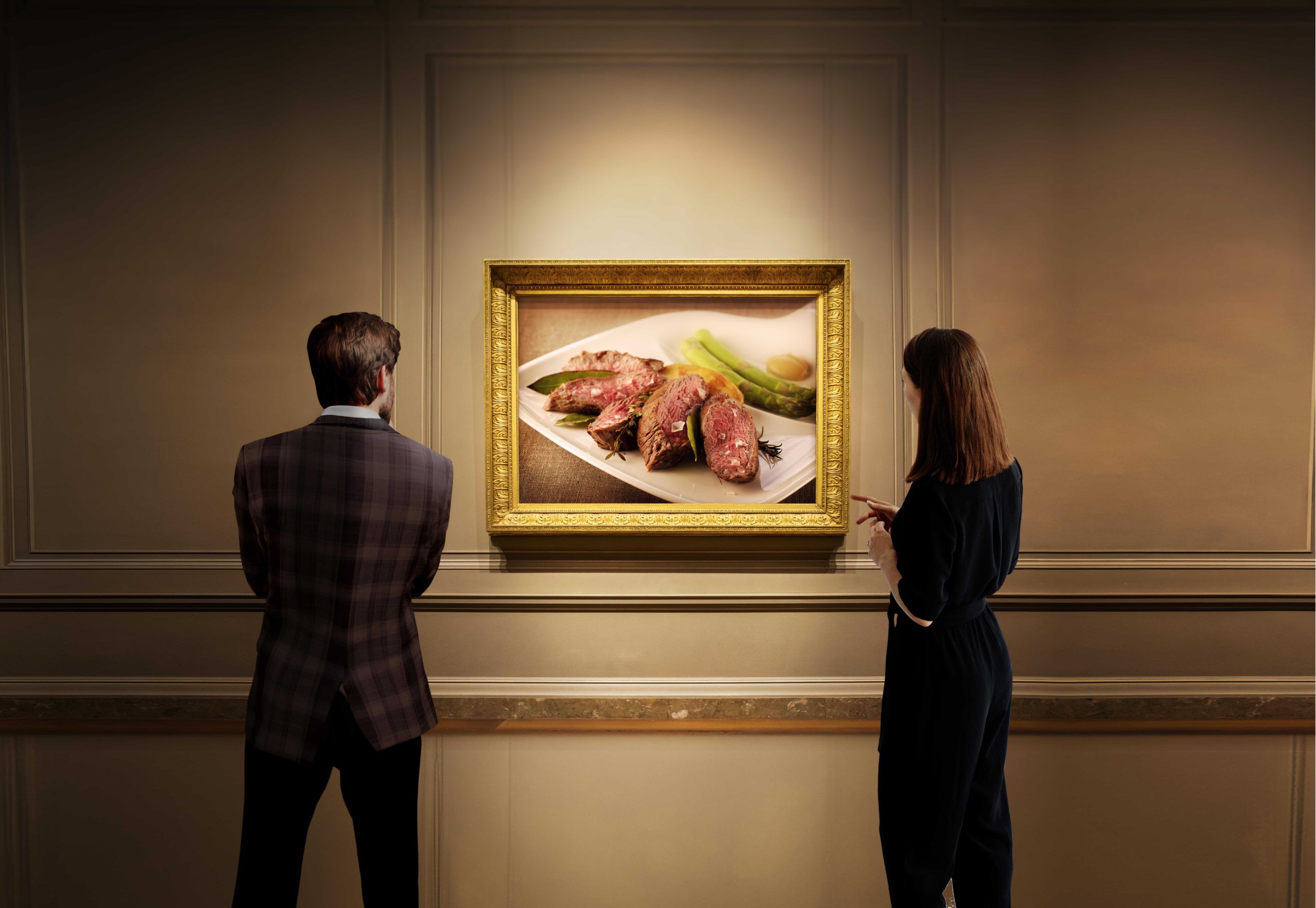 Trasformare un’eccellenza gastronomica in un simbolo culturale: con il soggetto “Capolavoro” la Carne di Razza Piemontese entra idealmente in un museo, esposta come un’opera d’arte.